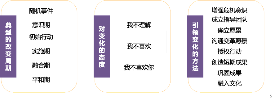 融合了权威的理论体系,包括Rick Maurer的变革周期理论和三级抗拒理论、变革大师John Kotter的引领变革八步法以及广泛认可的领导力理论,强调从理解适应变化中的人的状况为出发点,有效引领团队完成各种创新和变革。